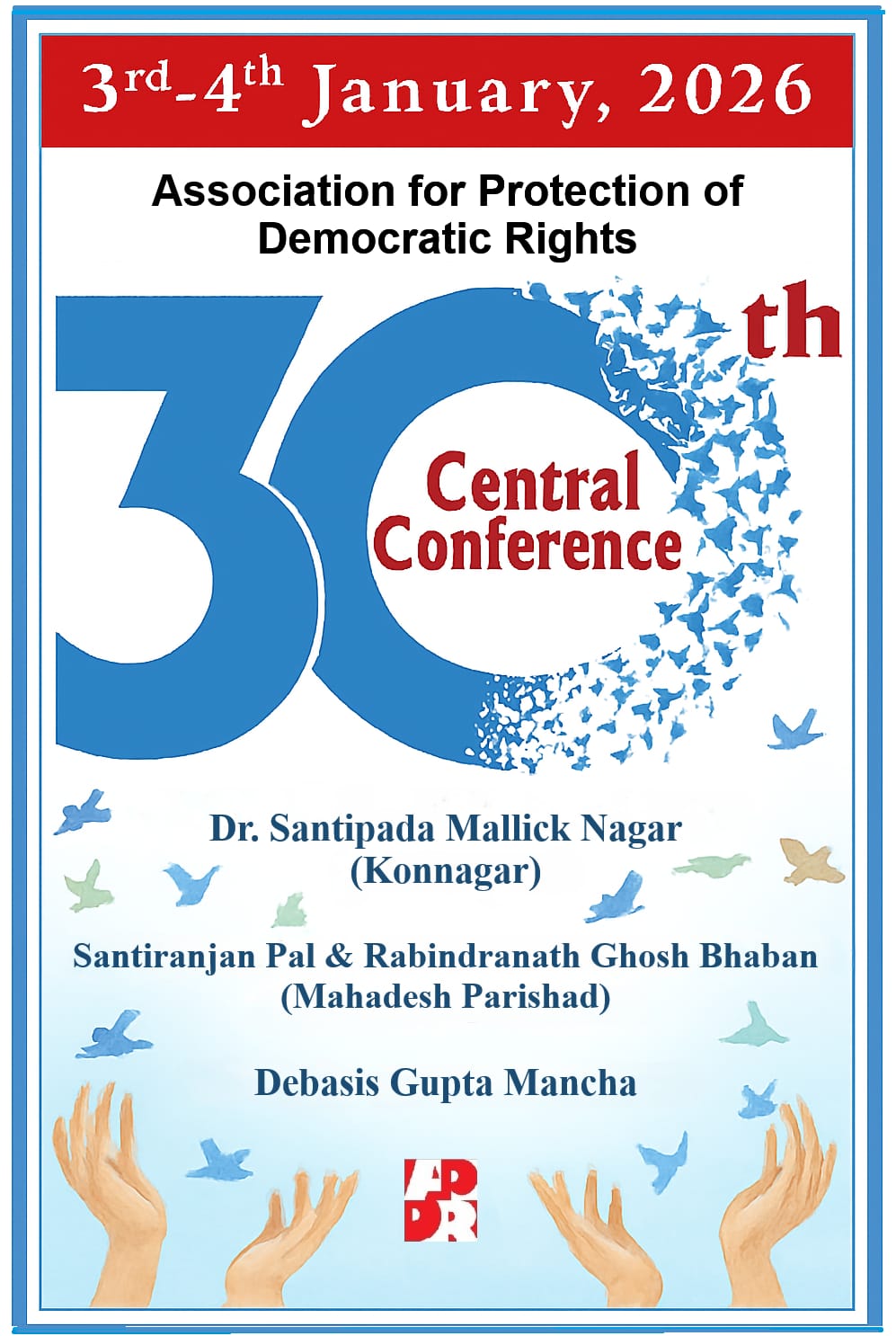 The APDR is part of the countrywide civil and human rights movement. Since its inception in 1972, the association with its branches spread throughout West Bengal, India has been working for the protection of civil and democratic rights of the people and against all forms of state repression. In the context of state repression that has been sweeping for last few years all over India, the necessity of such organisations has been increased. Reckless abuse of power in the name of development and maintenance of law and order by the higher state machinery have not only led to the common human rights being violated, even the provisions of the prevalent law of the land have been neglected at every step.