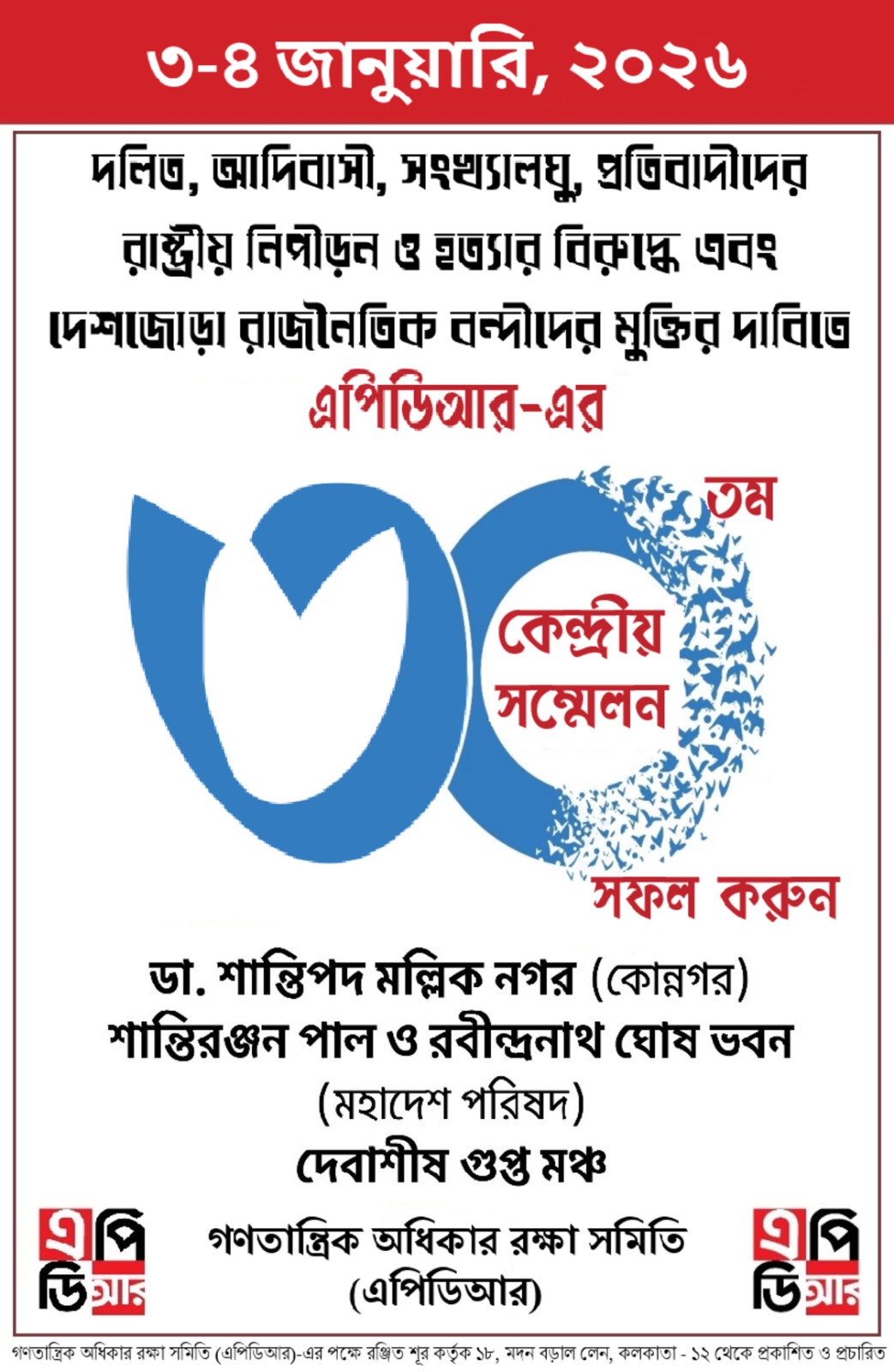 The APDR is part of the countrywide civil and human rights movement. Since its inception in 1972, the association with its branches spread throughout West Bengal, India has been working for the protection of civil and democratic rights of the people and against all forms of state repression. In the context of state repression that has been sweeping for last few years all over India, the necessity of such organisations has been increased. Reckless abuse of power in the name of development and maintenance of law and order by the higher state machinery have not only led to the common human rights being violated, even the provisions of the prevalent law of the land have been neglected at every step.